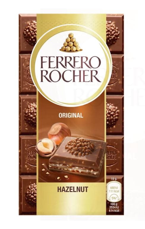 Otwórz nową tabliczkę mlecznej czekolady Ferrero Rocher, odkryj wyjątkowe doznania smakowe i wyrusz w swoją własną podróż pełną przyjemności.
