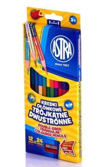 ASTRA Kredki ołówkowe dwustronne 24 kolory + temperówka