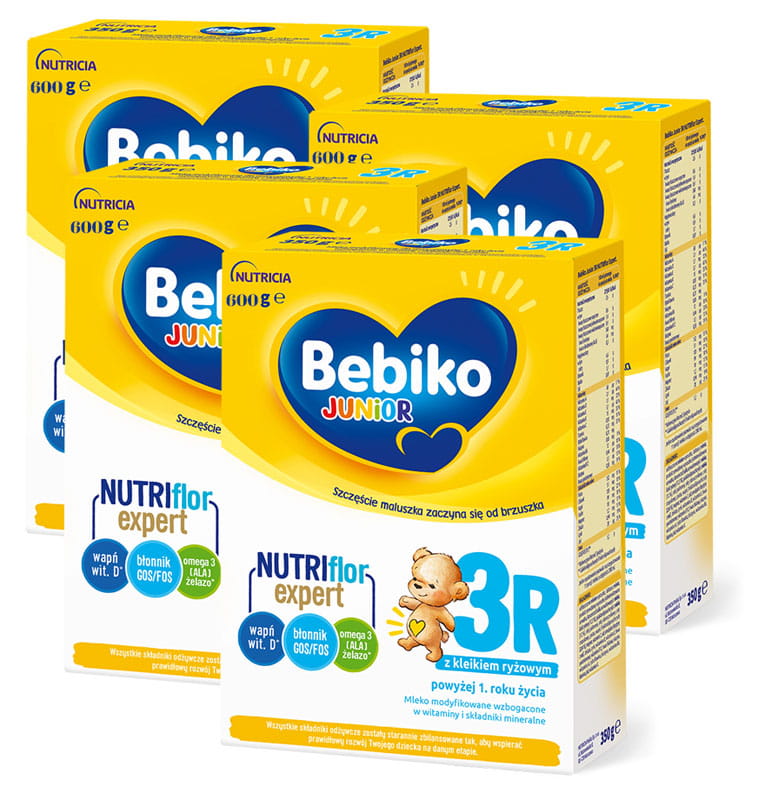 BEBIKO Junior 3R Mleko modyfikowane z kleikiem ryżowym od 1 roku życia - 4x600g
