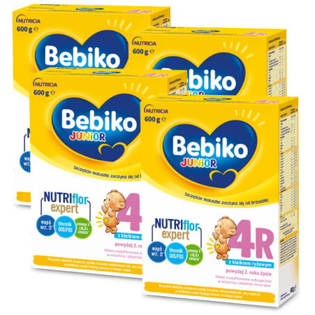 Właściwie odżywiony brzuszek to podstawa dobrego samopoczucia i intensywnego rozwoju Twojego dziecka. Bebiko Junior 4R z formułą NUTRIflor Expert dba o szczęście małych brzuszków, gdyż zawiera kompozycję składników odżywczych wspierających prawidłowy rozwój Twojego dziecka. Bebiko Junior 4R NUTRIflor Expert może również służyć do przygotowania kleików i bezmlecznych kaszek BoboVita.