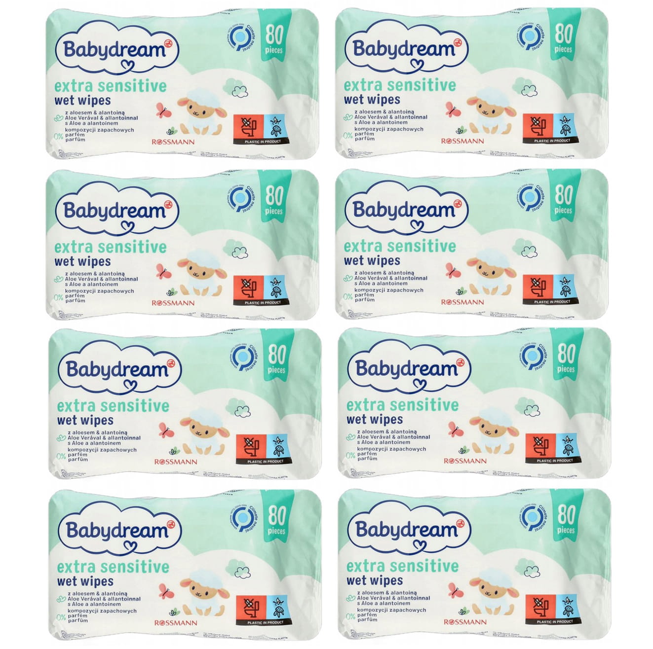 Babydream chusteczki nawilżane Extra Sensitive 8x80 szt