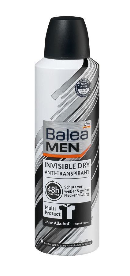Odkryj dezodorant w sprayu Invisible Dry marki Balea MEN, który zapewnia niezawodną, długo utrzymującą się ochronę o dobrej tolerancji dla skóry.