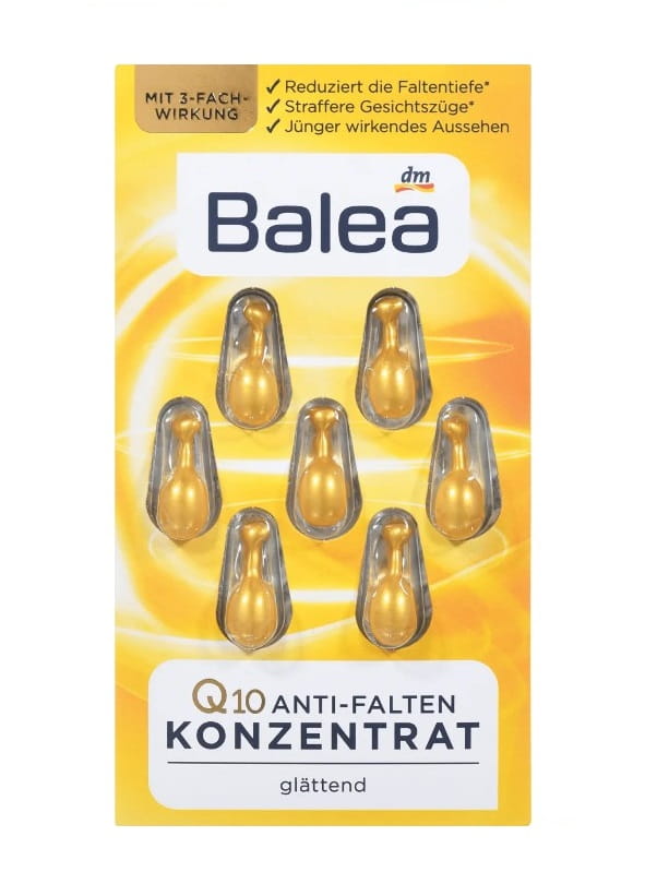 Balea Przeciwzmarszczkowy Koncentrat do Twarzy Q10 to produkt, który zapewnia rozpieszczającą specjalną pielęgnację o skutecznym działaniu. Nasz koncentrat, zawierający koenzym Q10 i wyciąg z żeń-szenia, redukuje głębokość zmarszczek, zwiększa elastyczność oraz jędrność skóry, wzmacniając ją od wewnątrz. Dzięki regularnemu i długotrwałemu stosowaniu, Twoja skóra będzie wyglądać na gładszą i młodszą.