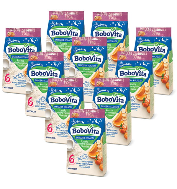 Nasze kaszki BoboVita odpowiadają na szczególne potrzeby żywieniowe Twojego dziecka. Z nimi każda chwila ma pyszny smak, a Ty możesz się cieszyć radosnym „Mniam”! Kaszka smaczna kolacja mleczno-ryżowa 3 owoce została starannie skomponowana tak, by zawierała to, co dobre dla Twojego dziecka przed snem.