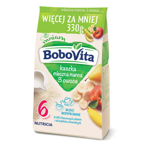 BoboVita Kaszka mleczna manna 3 owoce 5x 330g 6+