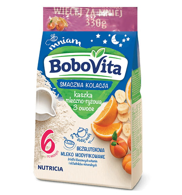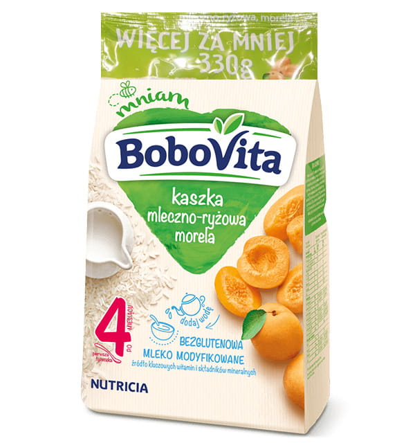 Nasze kaszki BoboVita odpowiadają na szczególne potrzeby żywieniowe Twojego dziecka. Z nimi każda chwila ma pyszny smak, a Ty możesz się cieszyć radosnym „Mniam”! Kaszka mleczno-ryżowa morela została starannie skomponowana tak, by zawierała to, co dobre dla Twojego dziecka.