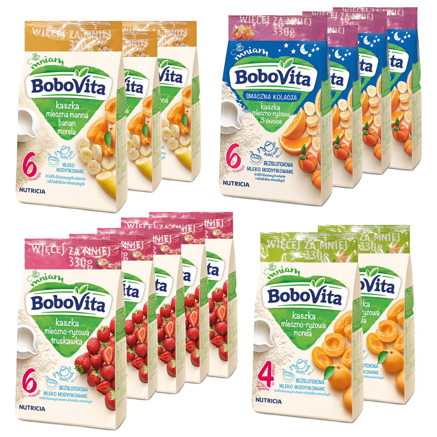 BoboVita Kaszki mleczno-ryżowe i manne MIX 14 x330g 4+ 6+