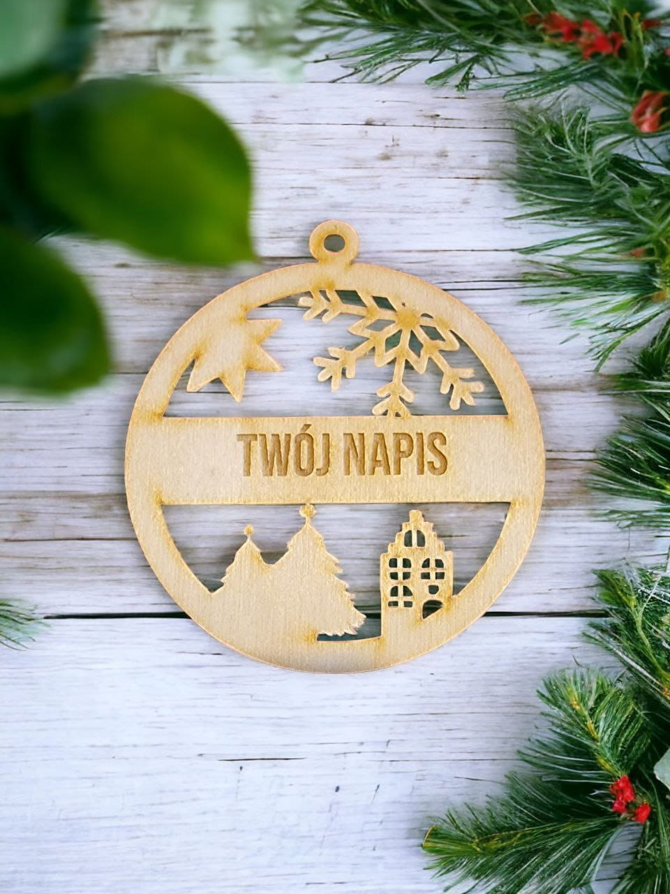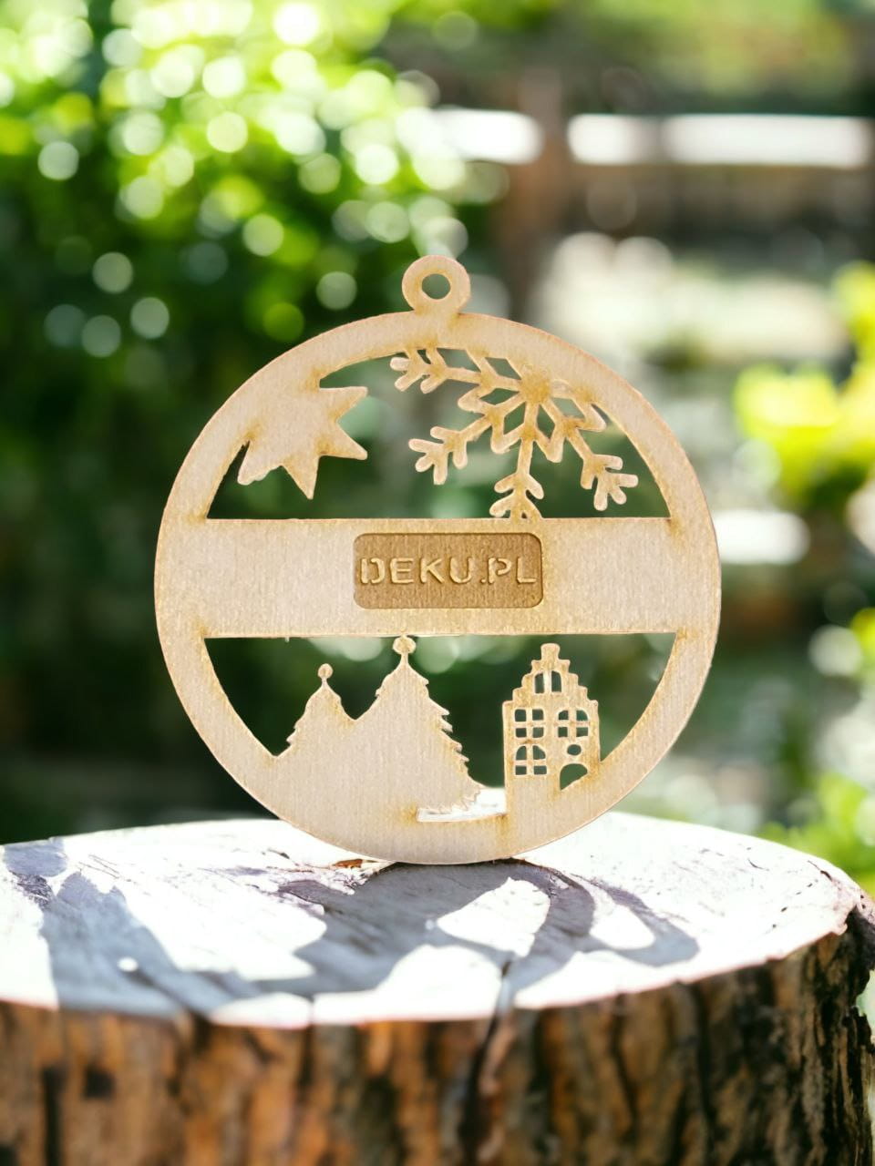 Bombka wykonana jest z wysokiej jakości drewna, które nadaje jej eleganckiego wyglądu i trwałości. Produkt wykonany w Polsce.