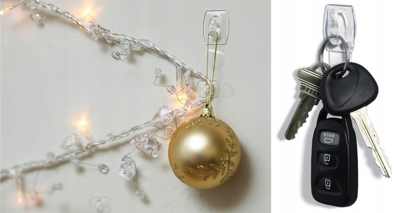 Haczyki i samoprzylepne paski Command są przezroczyste, dzięki czemu spełniają swoją funkcję i nie rzucają się w oczy.