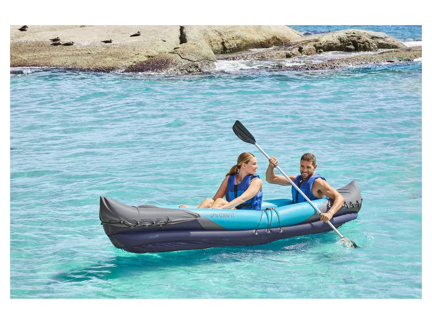 CRIVIT Kajak nadmuchiwany 2-osobowy 325 x 76 x 48 cm + składane wiosło