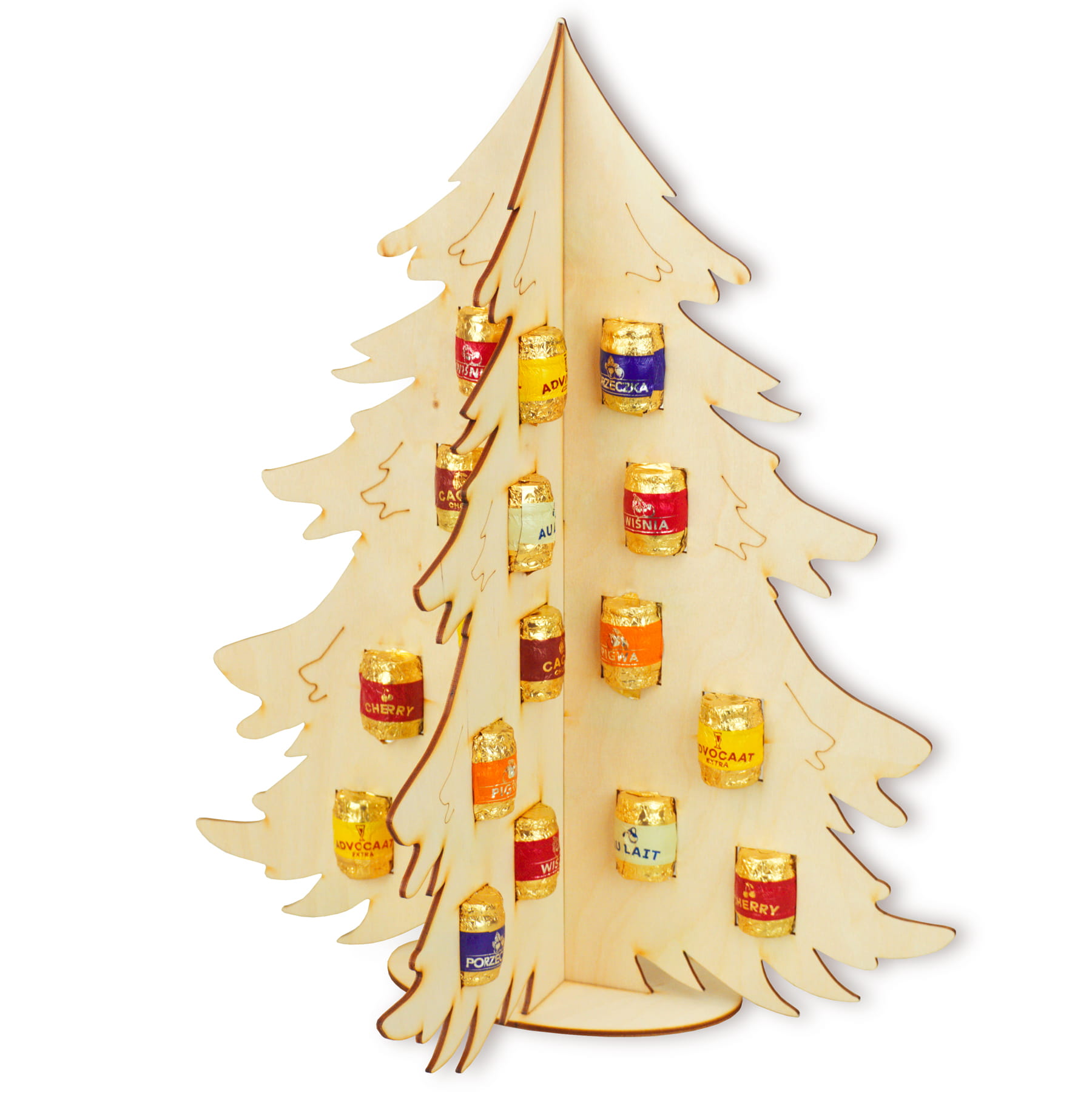 Stylowa dekoracja w formie świątecznej choinki. Przeznaczona zarówno do dekoracji wnętrz, do tradycyjnego odliczania dni do Wigilii, oraz do przechowywania ulubionych Baryłek od Wedla.