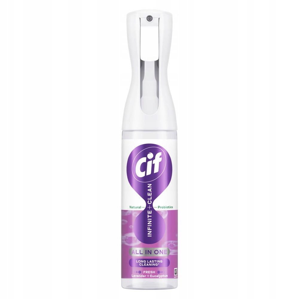 Cif Infinite Clean Uniwersalny Clean Fresh Lavender – Twoje codzienne sprzątanie na nowym poziomie! Poznaj innowacyjny środek czyszczący, który łączy skuteczność tradycyjnych detergentów z dobroczynnym działaniem naturalnych probiotyków. Idealny do codziennego czyszczenia różnego rodzaju powierzchni, zapewnia higieniczną czystość i świeżość w Twoim domu. Wszechstronne zastosowanie uniwersalnego sprayu Cif sprawdzi się wszędzie – w kuchni, łazience, a nawet na zewnątrz!