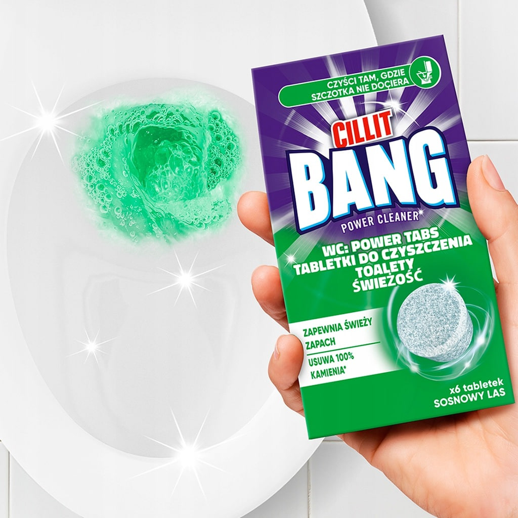 Tabletki do czyszczenia toalety Cillit Bang WC: Power Tabs zostały stworzone, aby skutecznie usuwać trudne plamy w toalecie zapewniając najlepsze efekty czyszczenia sedesów.