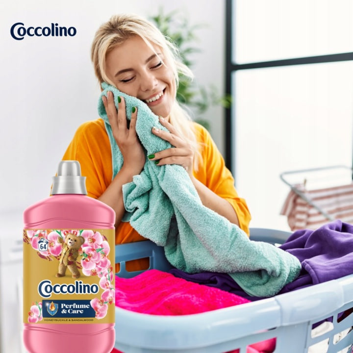 Płyn do płukania Coccolino Perfume & Care wyróżnia się mocno skoncentrowaną formułą, a pojemność 1,6 L wystarcza aż na 64 prania.