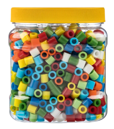 - 500 g dużych koralików w 8 żywych kolorach o średnicy 1 cm