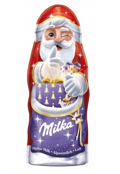 Figurka pokryta mleczna czekoladą z mleka alpejskiego w kształcie Mikołaja to idealny słodki, świąteczny podarunek dla dzieci ale i dorosłych. Pyszna, mleczna czekolada wyprodukowana w 100% z alpejskiego mleka to smak który zna i kocha każdy. Doskonale wpasuje się do dekoracji świątecznych jak i na prezent.