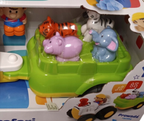 - Zwierzęta safari: Każde z nich, po włożeniu do odpowiedniego kształtu, wydaje realistyczny dźwięk lub krótką rymowankę – doskonały sposób na naukę przez zabawę!