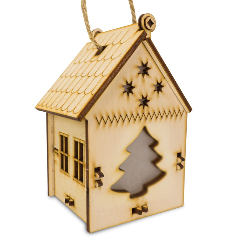 Uwielbiasz Świąteczny nastrój w swoim domu? Piękny i niezwykle urokliwy domek przeznaczony zarówno do dekoracji wnętrz jak i punktowego oświetlenia pomieszczenia. W środku znajduje się miejsce na jeden wkład LED który jest imitacją popularnego ogrzewacza, a w środku świeci i migocze jak prawdziwy. Należy pamiętać aby nie wkładać do środka prawdziwych świec ponieważ domek wykonany jest ze sklejki brzozowej. Domek posiada sznureczek do powieszenia go wszędzie tam, gdzie chcesz. Jest do samodzielnego złożenia dzięki czemu możesz złożyć go w całość razem z ciekawskimi maluchami!