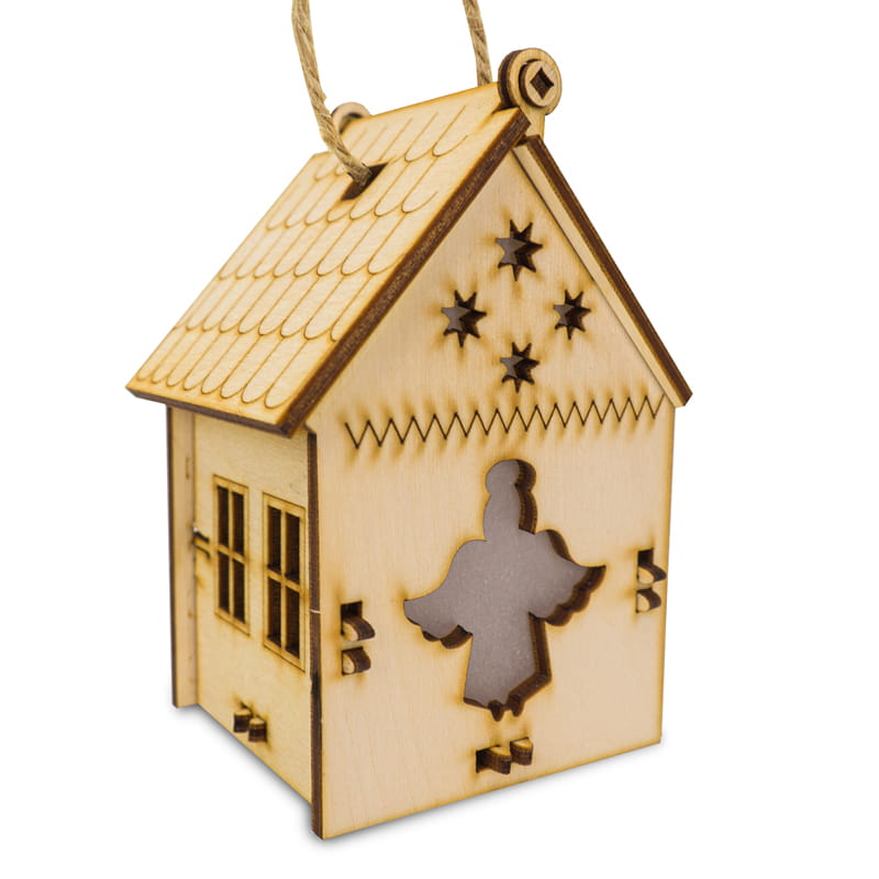 Uwielbiasz Świąteczny nastrój w swoim domu? Piękny i niezwykle urokliwy domek przeznaczony zarówno do dekoracji wnętrz jak i punktowego oświetlenia pomieszczenia. W środku znajduje się miejsce na jeden wkład LED który jest imitacją popularnego ogrzewacza, a w środku świeci i migocze jak prawdziwy. Należy pamiętać aby nie wkładać do środka prawdziwych świec ponieważ domek wykonany jest ze sklejki brzozowej. Domek posiada sznureczek do powieszenia go wszędzie tam, gdzie chcesz. Jest do samodzielnego złożenia dzięki czemu możesz złożyć go w całość razem z ciekawskimi maluchami!