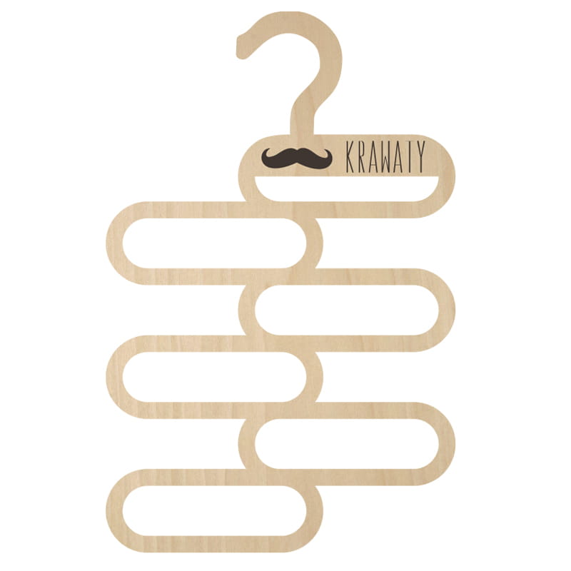 Wykonany z wysokiej jakości sklejki brzozowej o grubości 5 mm. Wytrzymały , solidny i wygodny wieszak, na którym powiesisz swoje ulubione szaliki i apaszki. Wieszak posiada 6 przegródek, które pomieszczą wiele krawatów, apaszek, chust i szalików. Zmieszczą się na nim zarówno "śledzie", które w najszerszym miejscu mają 4-5 cm, jak i te szersze, które posiadają nawet 7-10 cm. Wieszak pomieści cienkie oraz grube materiały. Wieszak, możemy pomalować na różne kolory za pomocą bejcy do drewna na specjalne zamówienie. Wieszak na szaliki i apaszki to nietuzinkowy prezent dla kobiety, który je lubi i często je nosi oraz dla mężczyzny, który ceni sobie szyk i elegancję. Idealnie sprawdzi się w każdej męskiej oraz damskiej szafie. Można na nim również powiesić inne części garderoby. Wieszak wykonujemy z grawerunkiem lub bez. Grawerunek jest w cenie wieszaka.