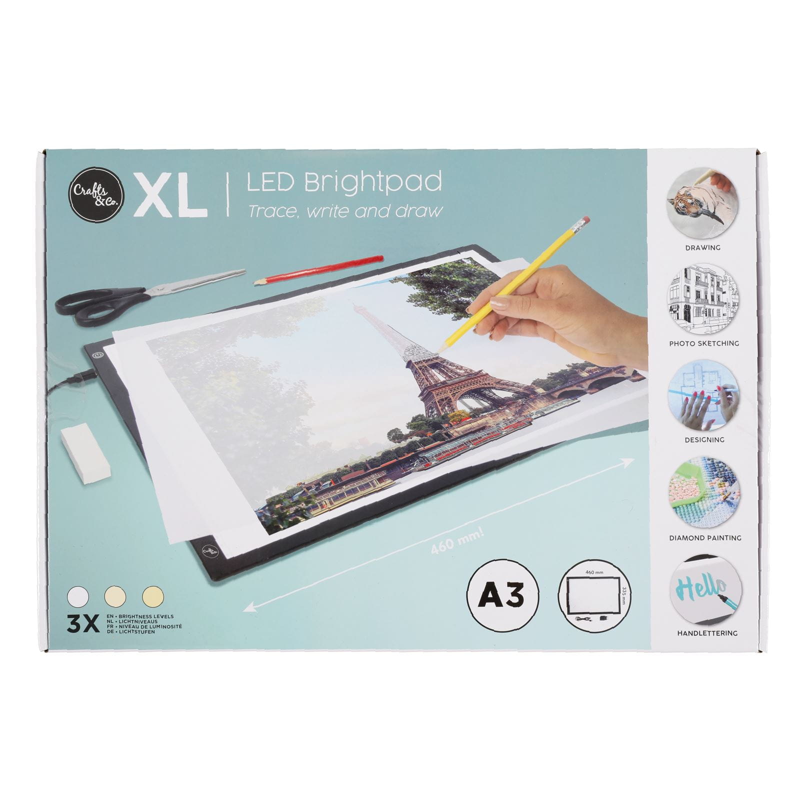 Ta ultracienka, podświetlana deska kreślarska A3 przenosi każdy hobbystyczny projekt na wyższy poziom. Dzięki przejrzystemu światłu diod LED i ultracienkiej konstrukcji jest niezwykle ulubionym akcesorium do kaligrafii, liternictwa, rysunków, projektów, wzorów tkanin, zdjęć a nawet diamentowych obrazów.