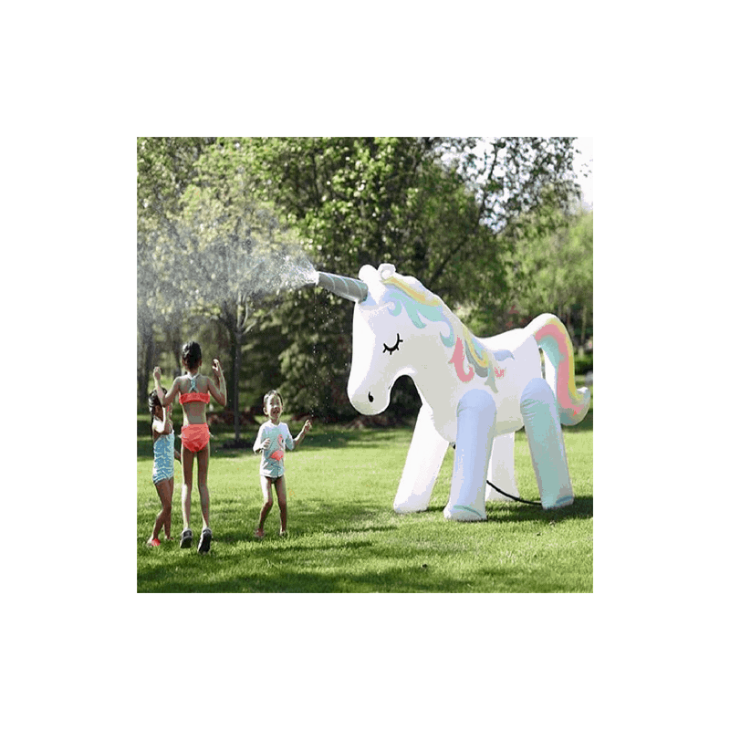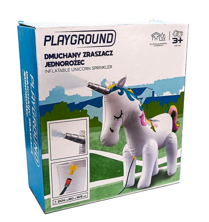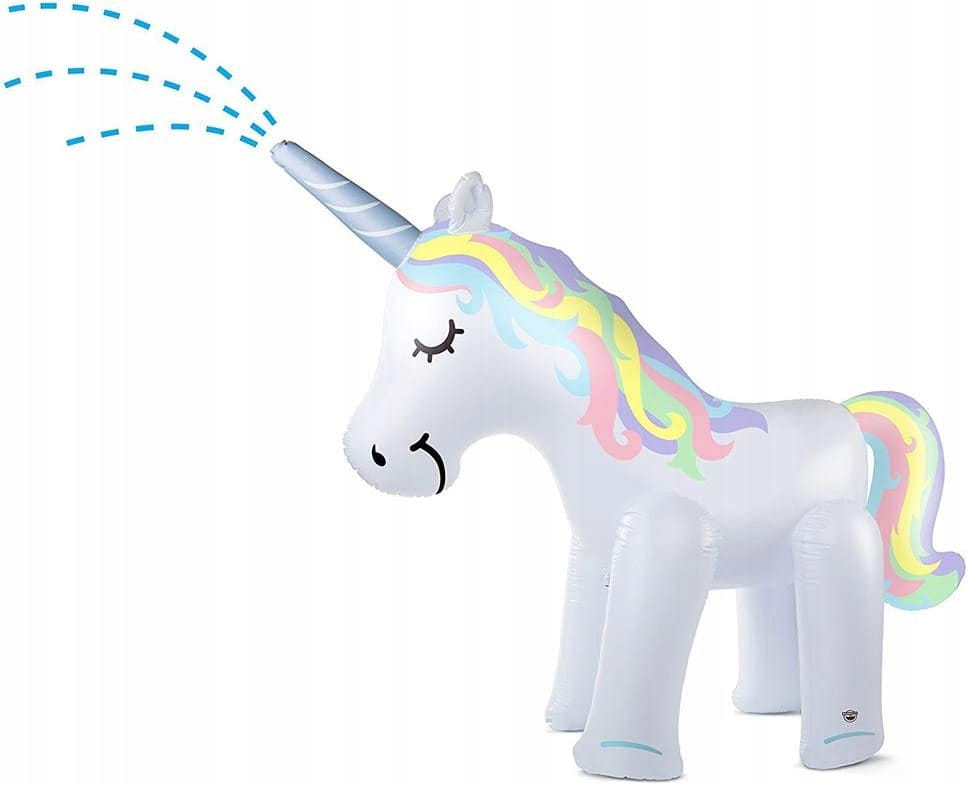 Ten ogromny magiczny jednorożec sprawi, że najbliższe lato będzie niezapomniane! Każde dziecko marzy o gigantycznym jednorożcu. Ten niesamowity dmuchany jednorożec sprawi, że twoja rodzina będzie miała najlepsze lato w życiu. Nadmuchiwany stwór wyposażony jest w rurę, która umożliwia podłączenie go do węża ogrodowego, dzięki temu jednorożec zamienia się w tryskającą wodą fontannę.