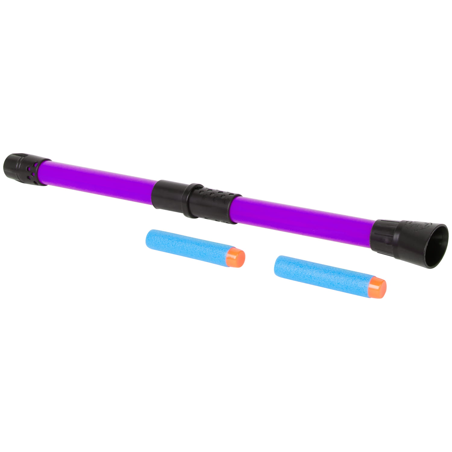 Jak się bawić? Bardzo proste - włóż lotkę w węższy otwór dmuchawki, przyłóż dmuchawkę szerszym otworem do ust, wyceluj, nabierz duuuużo powietrza i dmuuuuchaj. Aerodynamiczne lotki mają zasięg nawet 10 metrów - odległość zależy od siły naszego dmuchnięcia. Można grać na dworze i w pomieszczeniu, ustawiając cele w dowolnym miejscu. Zliczaj punkty i sprawdź kto wygrał.