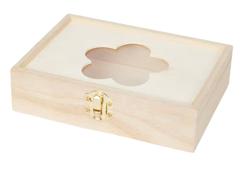 Przechowuj drobiazgi w tym drewnianym pudełku do przechowywania. Szklana część pokrywki pozwala od razu zobaczyć, co się znajduje w środku. Możesz oczywiście udekorować je samodzielnie, według własnego gustu.
