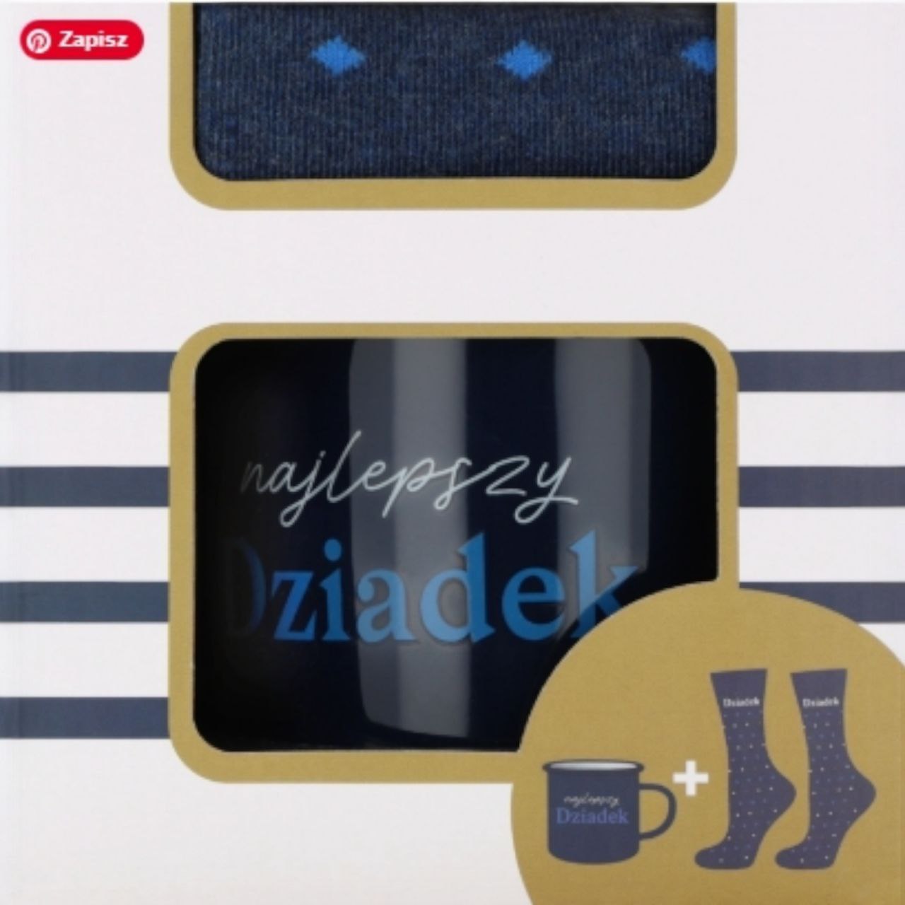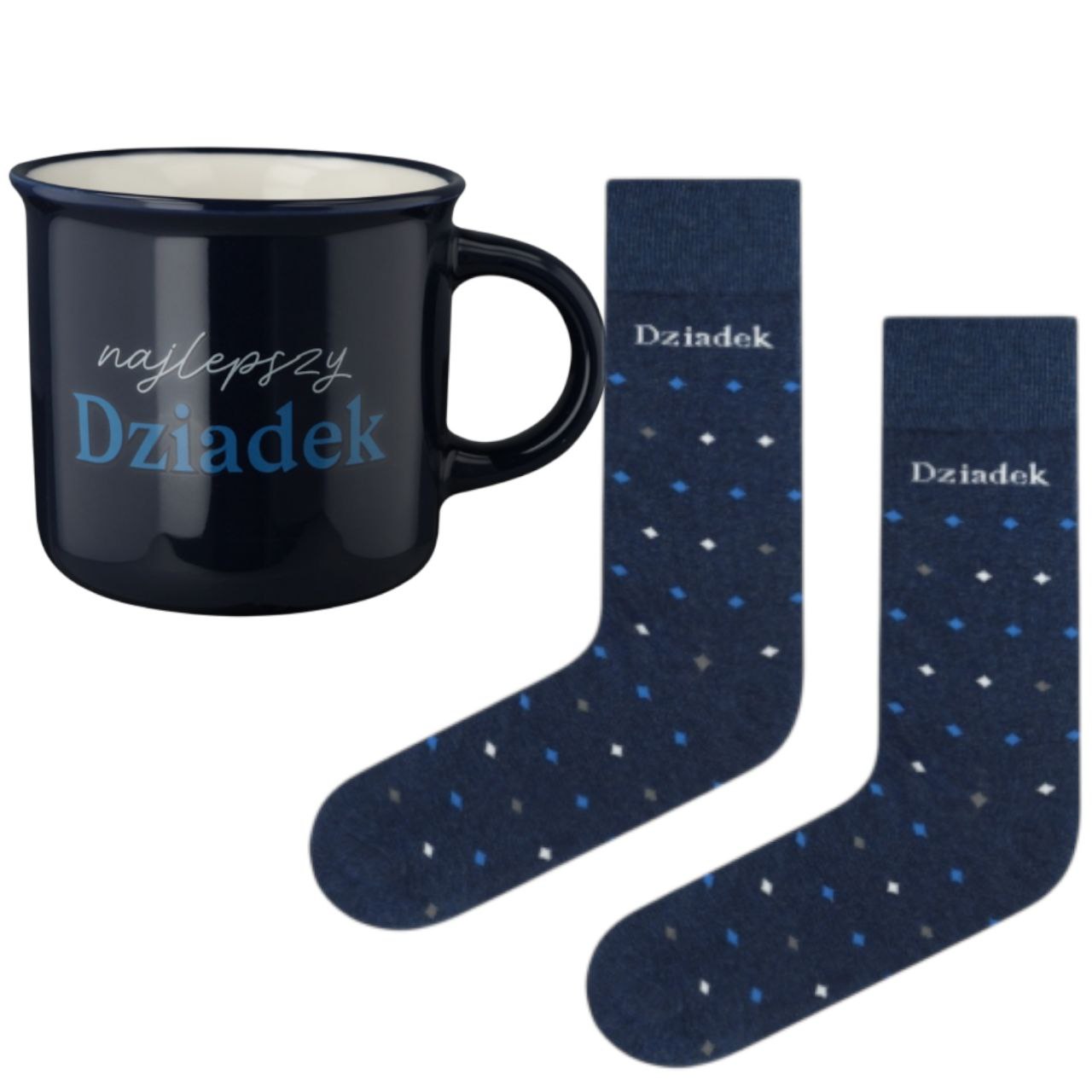 Zestaw prezentowy Eloy z granatowymi skarpetami i kubkiem z napisem „Najlepszy Dziadek”, sprawdzi się jako wyjątkowy upominek.
