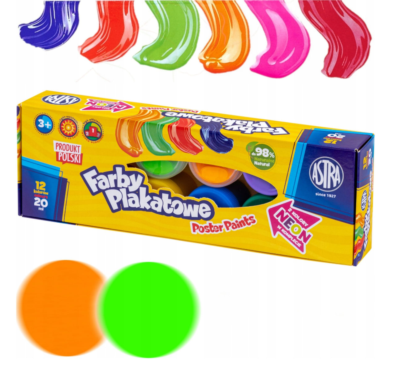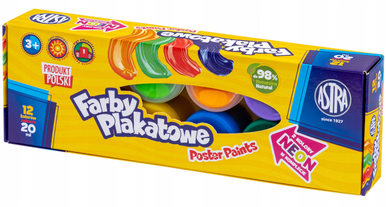 Farby plakatowe Astra 12 szt. x 20 ml 3+ NEON
