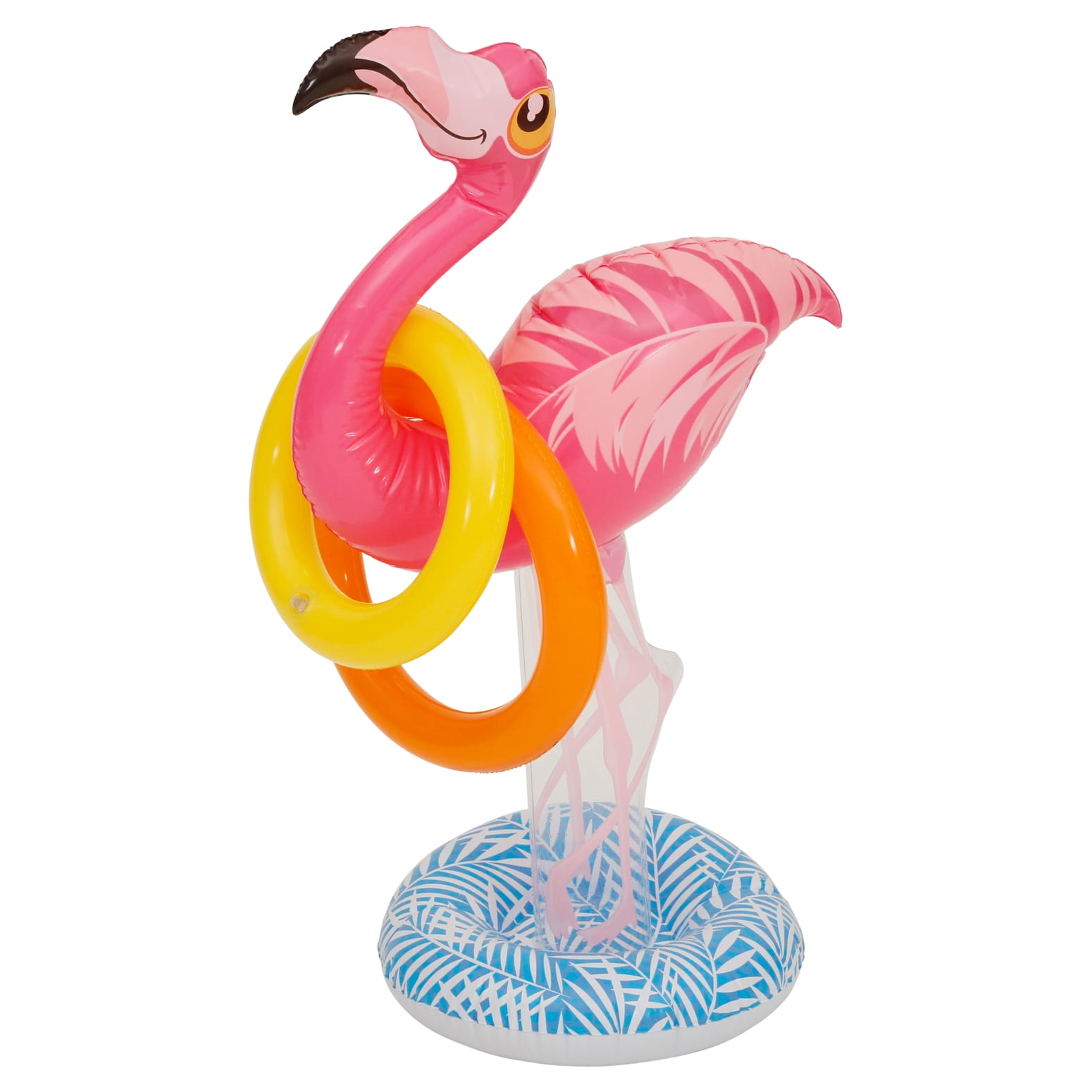 Nadmuchiwana gra rzucanie kołem w flaminga to mnóstwo frajdy dla wszystkich dzieci. Komu uda się trafić w cel najczęściej?