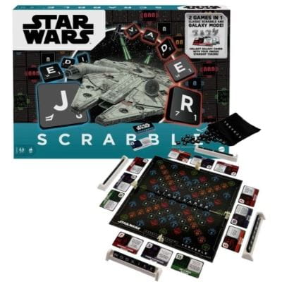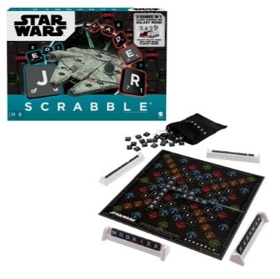 Odkryj odległą galaktykę z grą słowną Scrabble®: Edycja Star Wars™ Gwiezdne Wojny. Teraz możesz przenieść grę Scrabble® w nadprzestrzeń na 2 różne sposoby! Ciesz się klasyczną grą Scrabble z dodanym słownictwem z Gwiezdnych Wojen lub wypróbuj Tryb Galaktyczny pełen kosmicznej zabawy. Tryb Galaktyczny zmienia metodę zdobywania punktów, dlatego gracze na różnych poziomach zaawansowania mogą cieszyć się grą. W Trybie Galaktycznym układasz słowa, aby móc poruszać się wokół planszy jednym z czterech pionków w postaci statków kosmicznych – do wyboru jest Sokół Millennium, statek Boby Fetta, X-wing™ lub TIE Fighter™ – i zbierać Karty Galaktyczne, aby zdobywać moc i punkty. Słowniczek Gwiezdnych Wojen używany w obu trybach gry zawiera słownictwo Imperium, Rebeliantów i całej reszty mieszkańców galaktyki!