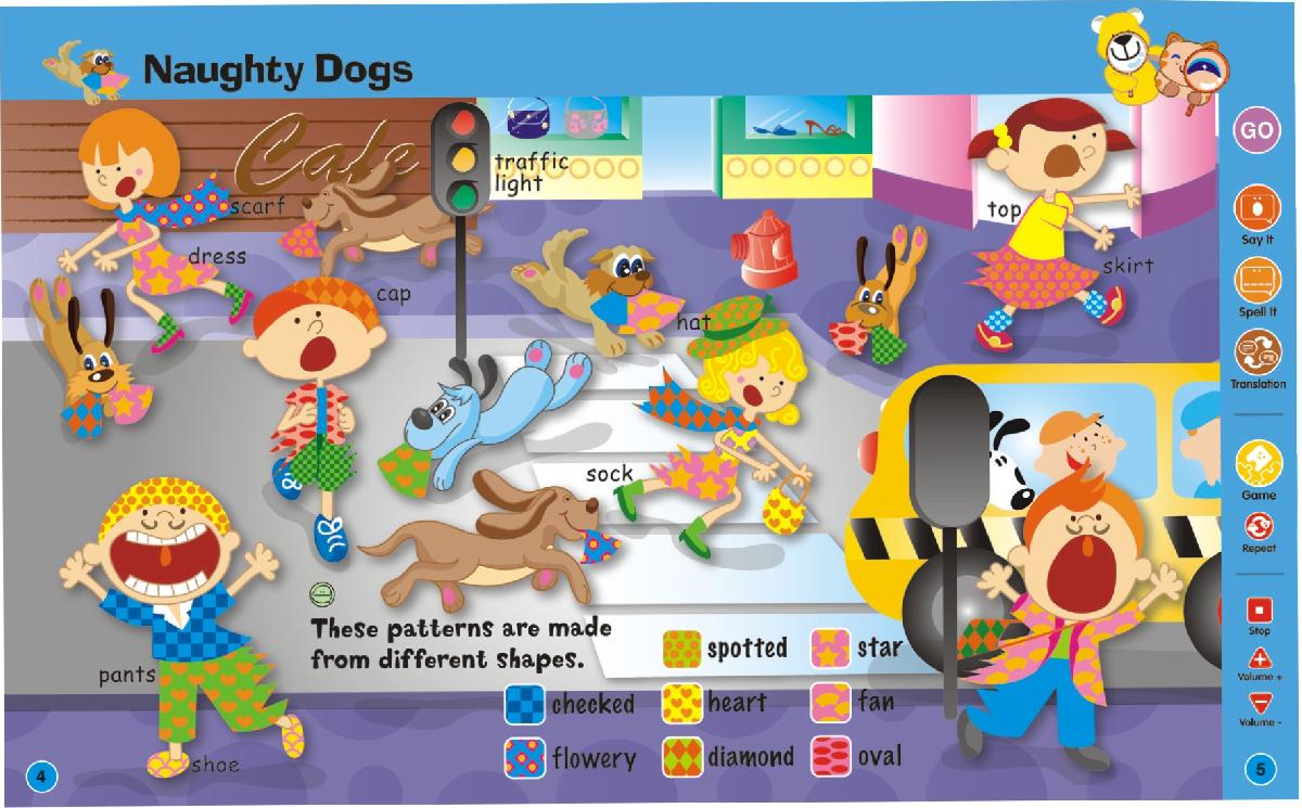 Wayne i Julia bawią się na wielkiej fali. Psy na ulicy są bardzo niegrzeczne i straszą ludzi! W dużym lustrze znajdują się dziwne odbicia. Dzieci próbują różnych smaków w nieporządnej kuchni. W zamku pojawiły się tajemnicze ślady stóp i dziwne przedmioty. Ludzie i zwierzęta biegną w ciemnym pomieszczeniu. O nie, wszyscy mają dziwaczne cienie! Weź udział w tych wszystkich wizualnych wydarzeniach. Otwórz książeczkę i czerp przyjemność z zabawy z piórem.