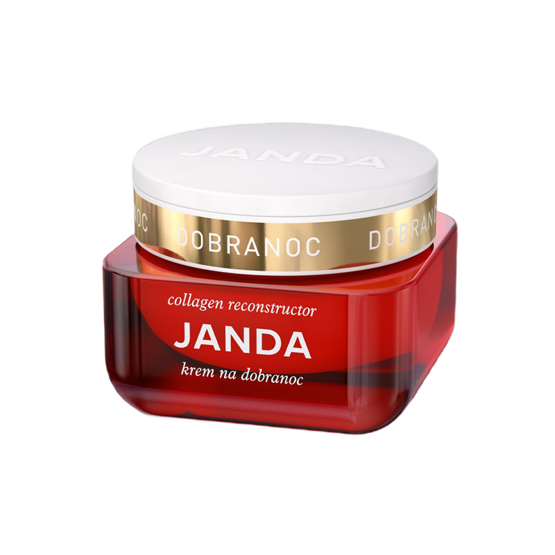 Sposób użycia: Krem nanoś codziennie wieczorem na twarz po dokładnym oczyszczeniu skóry. Omijaj okolice oczu. Pielęgnację dopełnij kremem na dzień dobry, kremem pod oczy i odmładzającą serum-odżywką na twarz szyję i dekolt z serii collagen reconstructor JANDA.