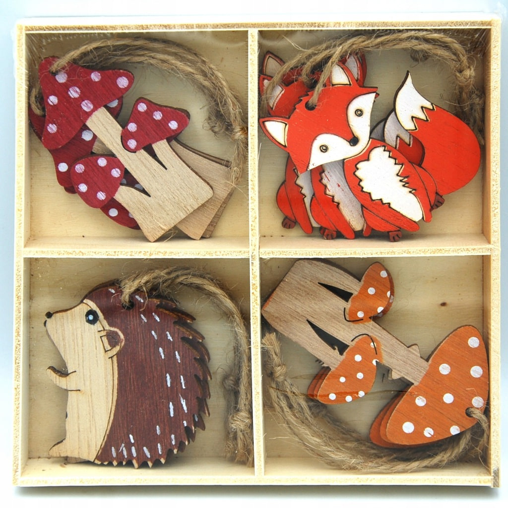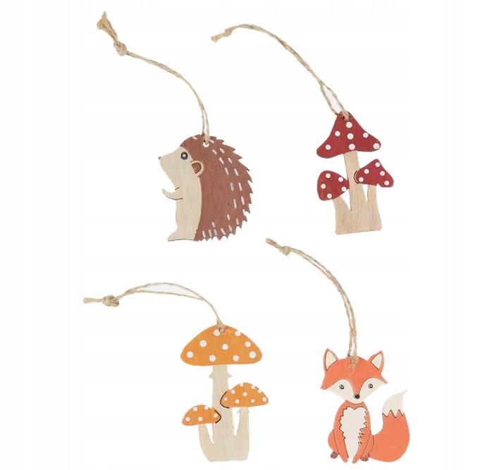 Jesienne zawieszki Różne figurki 12 sztuk Grzybki Liski Jeżyki
