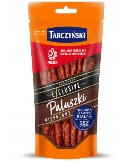 Dla miłośników wyjątkowego smaku wieprzowiny, ceniących sobie wygodę i funkcjonalne rozwiązania produktowe. Wyjątkowo cienkie kabanosy, w innowacyjnej formie gotowych pojedynczych paluszków, wyprodukowane z najwyższej jakości mięsa. Już teraz najwięksi smakosze, mogą delektować się swoimi ulubionymi smakami, sięgając po znakomitą przekąskę jaką są kabanosy linii Exclusive Easy. Dostępne w innowacyjnym, stojącym opakowaniu, które posiada strunę, dzięki której łatwo je otworzyć i ponownie zamknąć.