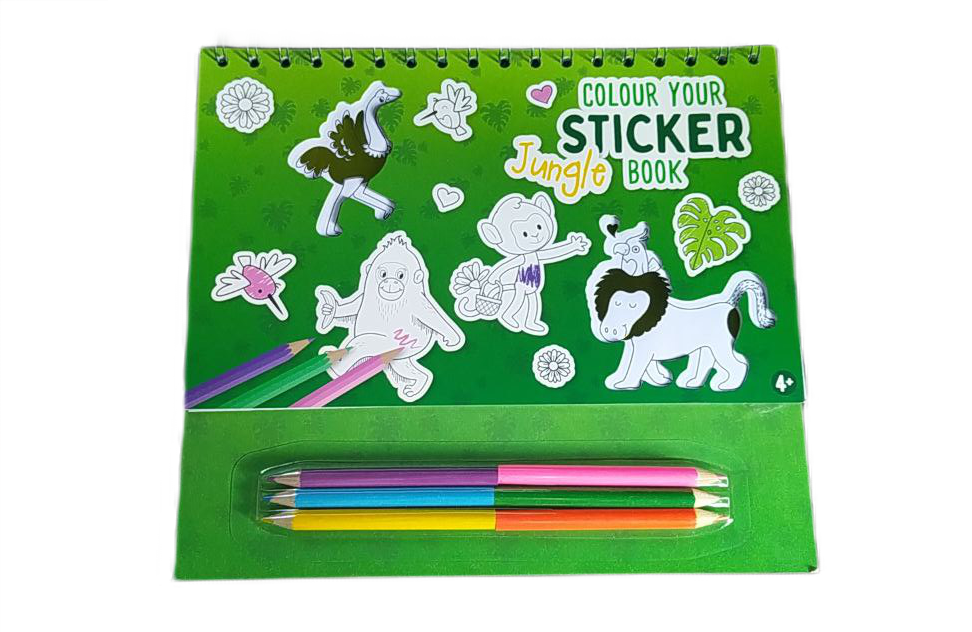 Kolorowanka z naklejkami i kredkami dżungla 4+