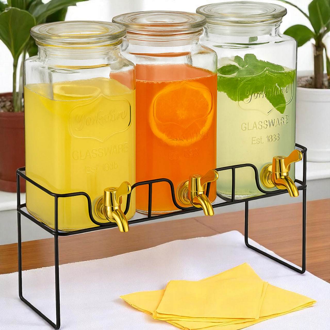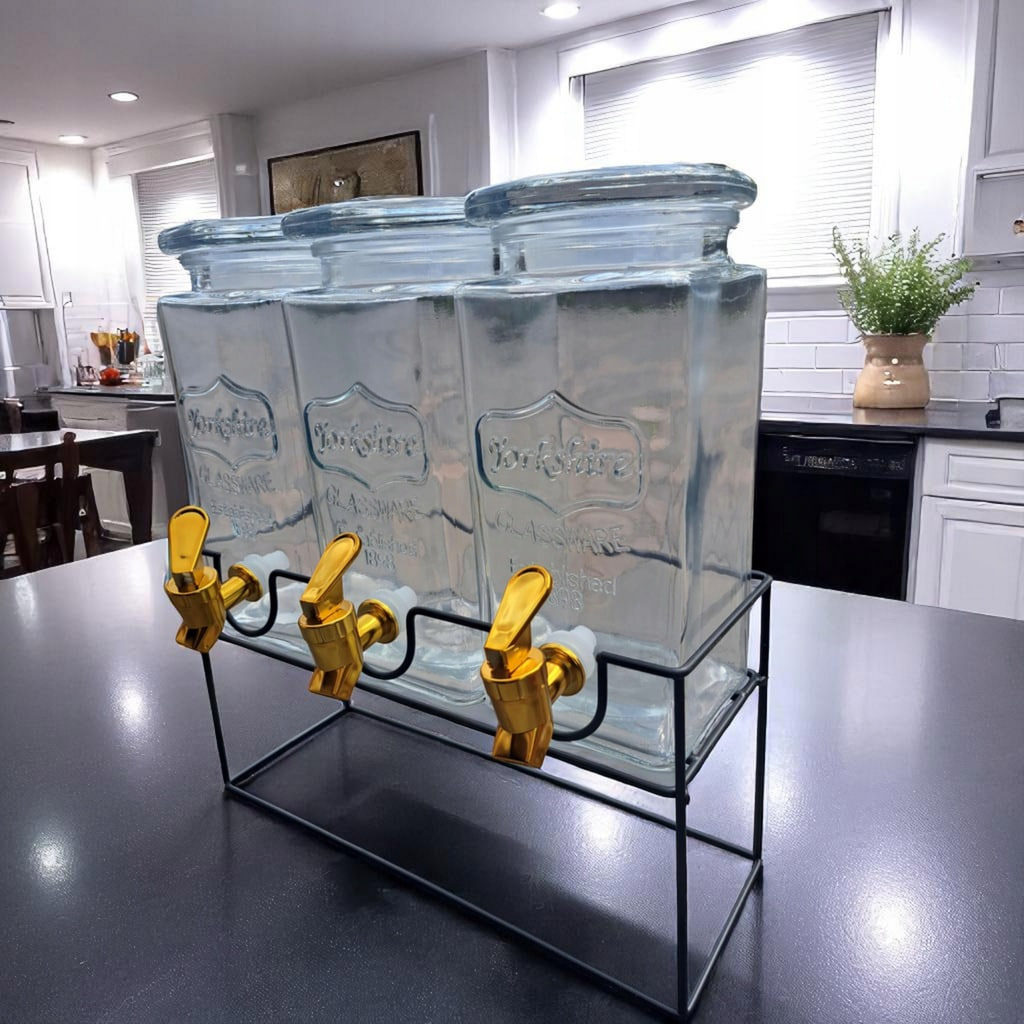 Dystrybutor Napojów z Kranikiem 4,5L - 3x1,5L – Szklane dozowniki na wodę, lemoniadę lub koktajle