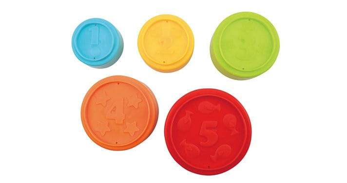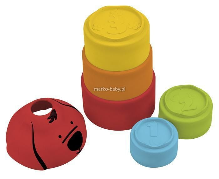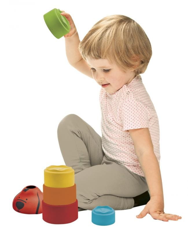 Metoda: Zachęć dziecko do układania wieży z 5 kubków rozpoczynając od najmniejszego kończąc na największym