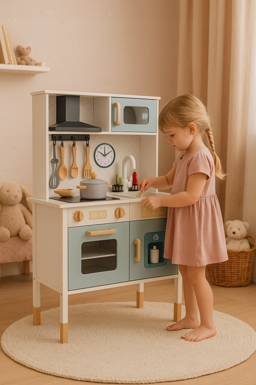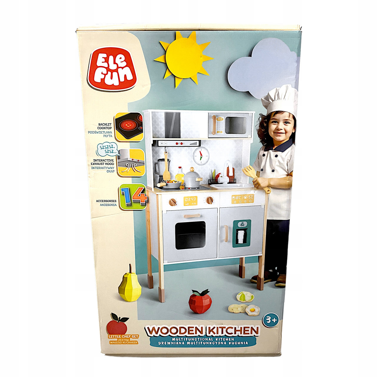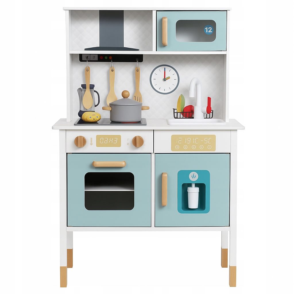 Rozpocznij kulinarne przygody z drewnianą kuchnią multifunkcyjną Elefun! Ta przestronna i funkcjonalna zabawka pozwala dzieciom na kreatywne odtwarzanie codziennych czynności w kuchni, rozwijając wyobraźnię i zdolności manualne.