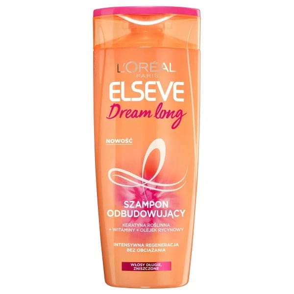 Odbudowujący szampon Dream Long wzbogacony w keratynę roślinną, olejek rycynowy oraz witaminy B i PP intensywnie wzmacnia włosy i odbudowuje je na całej długości. Dzięki odpowiednio dobranym składnikom szampon delikatnie oczyszcza skórę głowy, nie obciążając włosów. W efekcie stają się one mocne, mniej łamliwe i lśniące!Szczegóły produktu Marzysz o długich włosach, ale wciąż obcinasz zniszczone końcówki, aby zachować ich dobry wygląd? Koniec z tym! Poznaj gamę Dream Long, która regeneruje, odżywia i wygładza długie włosy od nasady aż po same końce. Na swój regularny szampon wybierz Szampon Odbudowujący Dream Long, który regeneruje włosy na całej długości i delikatnie oczyszcza skórę głowy.