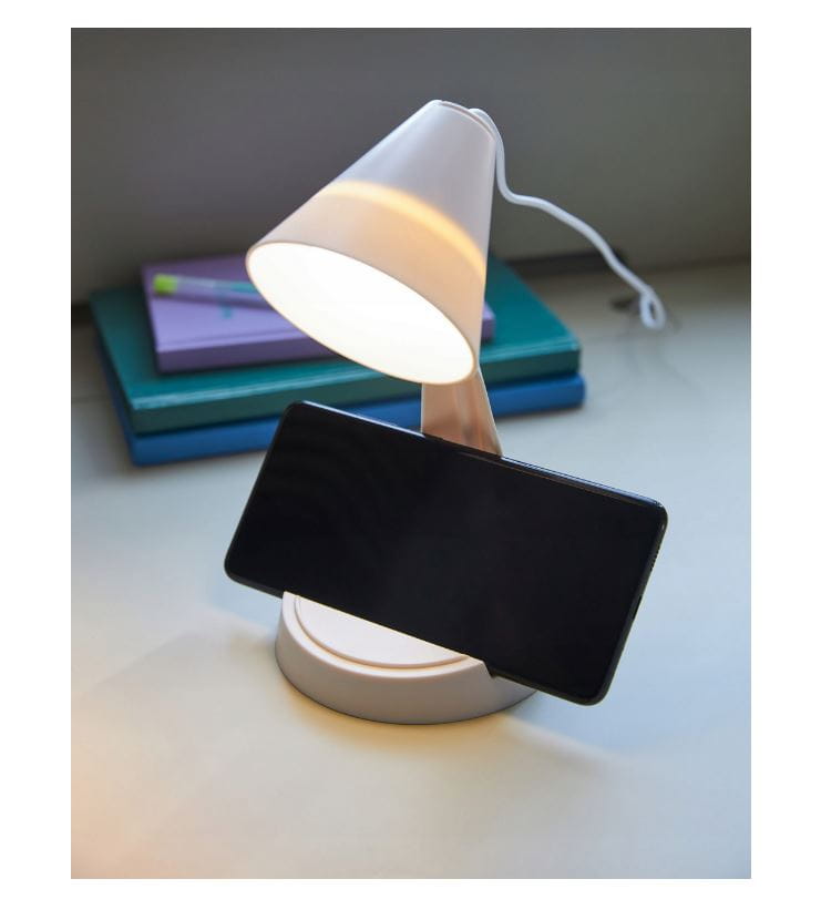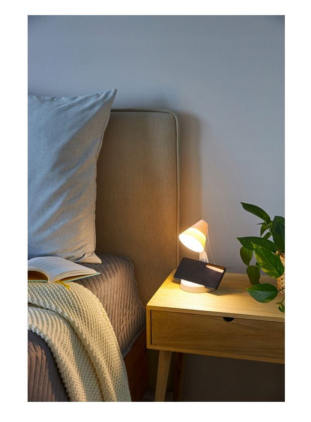 Jeśli zechcesz zmienić kąt padanie światła, z łatwością możesz odczepić klosz i zawiesić go, gdzie potrzebujesz, a podstawę lampki wykorzystaj np. jako miejsce do ustawienia smartfona.