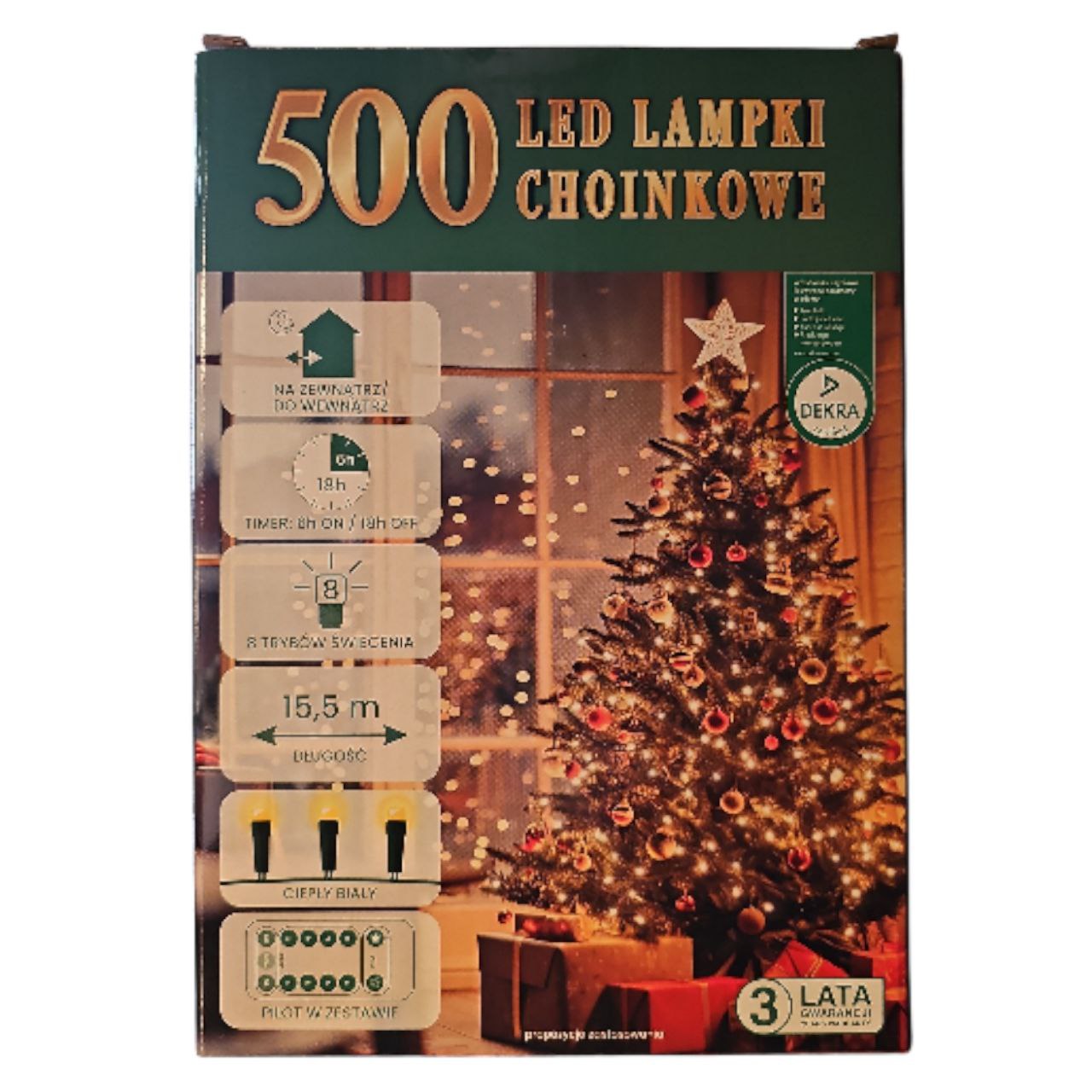 Lampki choinkowe 15,5 m 500 lampek ciepły biały 8 trybów + pilot