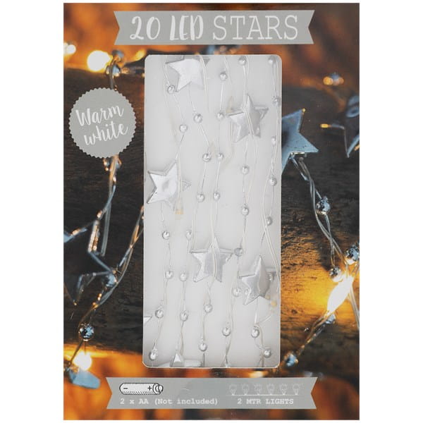 Łańcuch świetlny 20 lampek LED 2 m srebrne gwiazdki