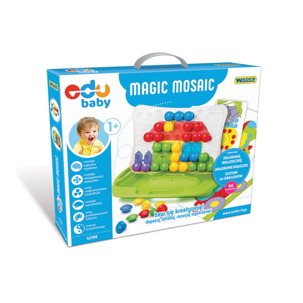 Dopasuj, układaj i poznawaj kolory oraz rozwijaj wyobraźnię dzięki Magic Mosaic! Kolorowe elementy, poręczne i składane opakowanie-walizka, ciekawe plansze ze wzorami to gwarancja doskonałej zabawy, w którą zaangażują się zapewne nie tylko maluchy!