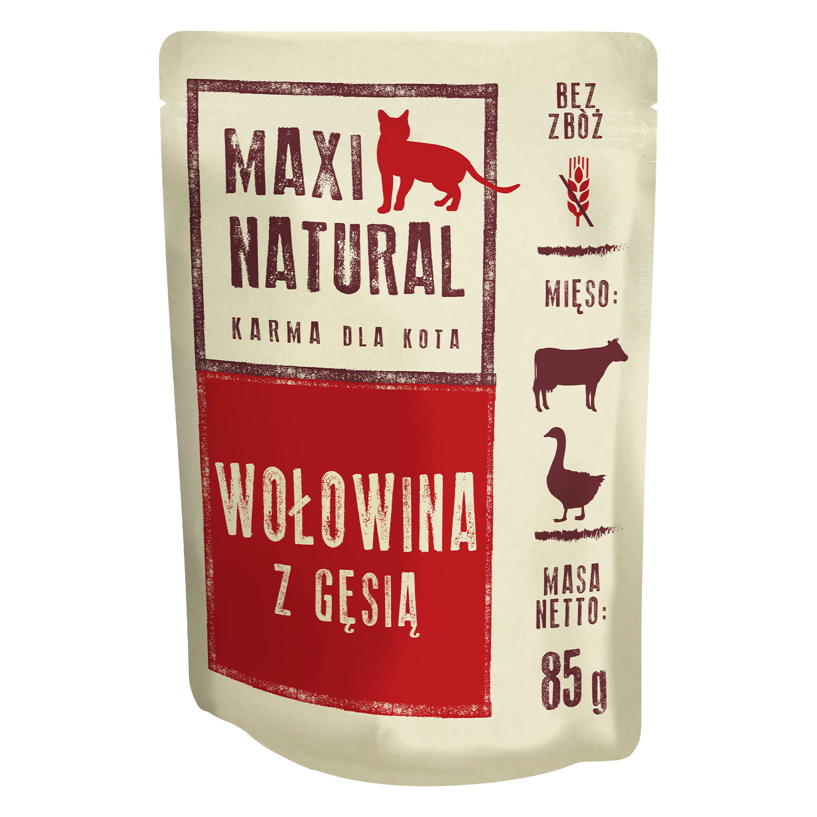 MAXI NATURAL – wołowina z gęsią to pełnoporcjowa mokra karma dla dorosłych kotów, której skład spełnia ich specyficzne wymagania żywieniowe. Wołowina wzbogaca karmę w minerały (żelazo, miedź, cynk) oraz witaminy z grupy B, szczególnie B12. Zapewnia także utrzymanie wysokiego poziomu kreatyny oraz L-karnityny, które pozytywnie wpływają na tempo przemiany materii dorosłych kotów.