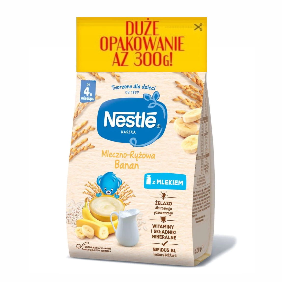 NESTLE Kaszka mleczno-ryżowa Banan - po 4 miesiącu 300g