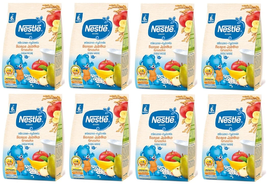 Kaszka mleczno-ryżowa Nestlé to pyszny pokarm o smaku jabłka, banana i gruszki . Jest to środek spożywczy specjalnego przeznaczenia żywieniowego. Kaszka to doskonały sposób na urozmaicenie diety malucha po 6 miesiącu życia. Kaszka wyprodukowana jest z wysokiej jakości ryżu pochodzącego z kontrolowanych upraw. Kaszka mleczno-ryżowa o smaku jabłka, banana i gruszki to pełnowartościowy, bezglutenowy posiłek. Dzięki zawartości mleka modyfikowanego, wystarczy dodać wodę, aby posiłek był gotowy.