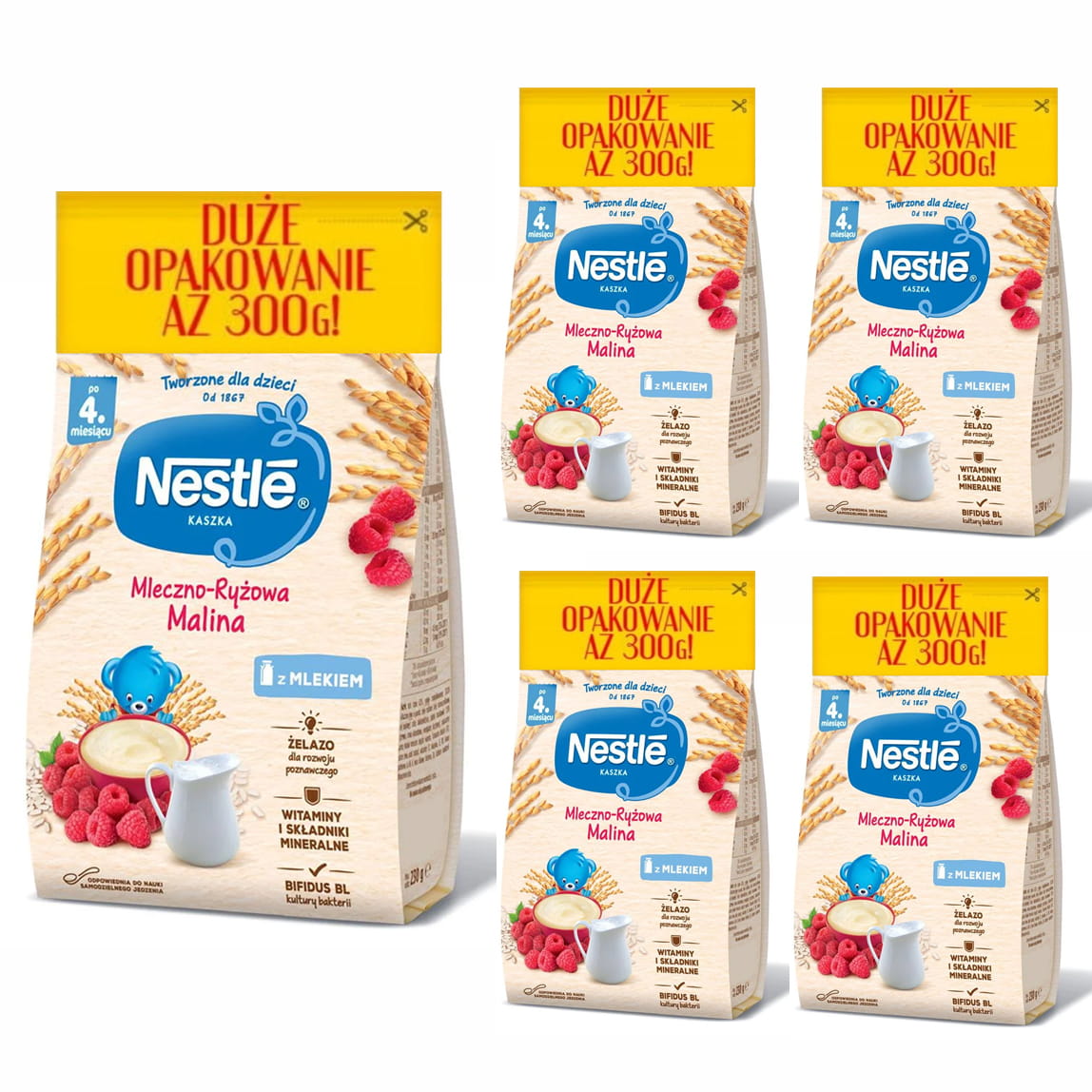 NESTLE Kaszka mleczno-ryżowa Malina - po 4 miesiącu 5x 300g