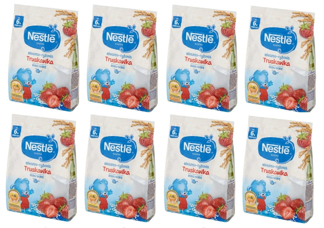 Kaszka mleczno-ryżowa Nestlé to pyszny pokarm o smaku truskawki. Jest to środek spożywczy specjalnego przeznaczenia żywieniowego. Kaszka to doskonały sposób na urozmaicenie diety malucha po 6 miesiącu życia. Kaszka wyprodukowana jest z wysokiej jakości ryżu pochodzącego z kontrolowanych upraw. Kaszka mleczno-ryżowa o smaku truskawki to pełnowartościowy, bezglutenowy posiłek. Dzięki zawartości mleka modyfikowanego, wystarczy dodać wodę, aby posiłek był gotowy.